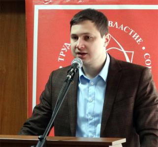 Затем по традиции состоялось вручение партийных билетов вновь вступившим. В этот раз это был молодой человек, принявший решение быть в авангарде трудового народа, Роман Константинов из Железнодорожного РК КПРФ.