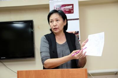 Секретарь первичной партийной организации первого микрорайона Элисты Саглара Чудутова поделилась опытом поиска и использования актуальной информации, касающейся выборов президента, а также внесла ряд предложений по наглядной агитации, работе с населением по месту жительства, на улицах, во время массовых мероприятий.