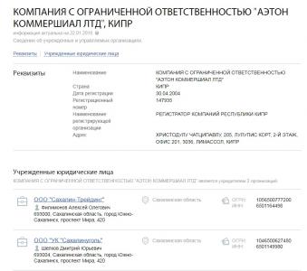 Одна из них – КОМПАНИЯ С ОГРАНИЧЕННОЙ ОТВЕТСТВЕННОСТЬЮ “АЛТРАСО ВЕНЧУРЗ ЛТД”. Вторая – “УПРАВЛЯЮЩАЯ КОМПАНИЯ “САХАЛИНУГОЛЬ”, создана еще одной офшорной компанией – “АЭТОН КОММЕРШИАЛ ЛТД”.