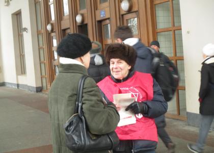 28 января во многих районах столицы можно было увидеть людей в красных накидках, раздающих москвичам газеты и буклеты, информирующие о программе кандидата в президенты России, выдвинутого от КПРФ при поддержке широкой коалиции национально-патриотических сил России Павла Грудинина. Московское городское отделение КПРФ проводило в этот день акцию «Красные в городе». Где-то она проходила в форме пикетов, где-то сопровождала проходящие митинги – как, например, на территориях Тимирязевского и Советского местных партийных отделений. Вместе с коммунистами Севастопольского отделения на улицы Москвы вышел лидер коммунистов ДНР Борис Литвинов, который рассказывал жителям столицы о роли КПРФ и директора совхоза им.Ленина Павла Грудинина в поддержке населения Донбасса.