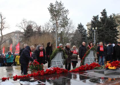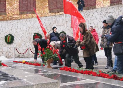 75 лет назад завершилось сражение, которое переломило ход всей Великой Отечественной войны, сражение, которое стало величайшим в мировой истории. Коммунисты и комсомольцы Волгограда хранят память об этих событиях. Сегодня корзина цветов с лентой Сталинградского обкома КПРФ появилась не только у Вечного огня. Представители компартии и Ленинского комсомола поднялись на главную высоту России – Мамаев Курган. Под красными флагами Победы прошли они по заснеженным ступеням мемориального комплекса и поклонились павшим в зале Воинской славы.