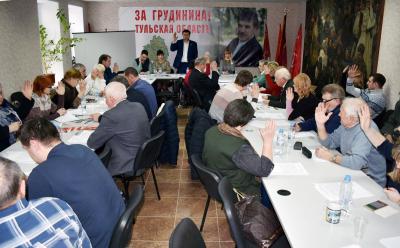 За прошедшее время обкому партии удалось развернуть всестороннюю работу по всему комплексу предвыборных мероприятий. По области проходят предвыборные собрания коммунистов и сторонников, встречи с жителями, выпущена большим тиражом газета «Тульская правда», где разоблачаются олигархи и чиновники, которые, боясь прихода народного президента, безуспешно пытаются залить страну потоками грязи, клеветы против Грудинина. Раскручивается официальный сайт Тульского обкома КПРФ, где в условиях российской цензуры люди могут узнавать правду.