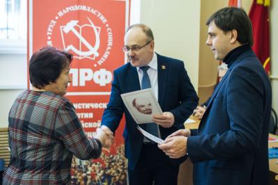Перед началом работы пленума А.Е.Клычков и В.Н.Иконников вручили Почетные грамоты обкома КПРФ первым секретарям местных отделений, отличившихся по итогам смотр-конкурса, посвященного 100-летию Великой Октябрьской социалистической революции.