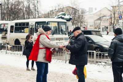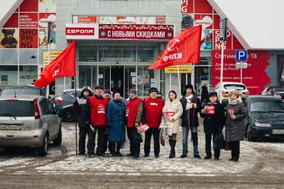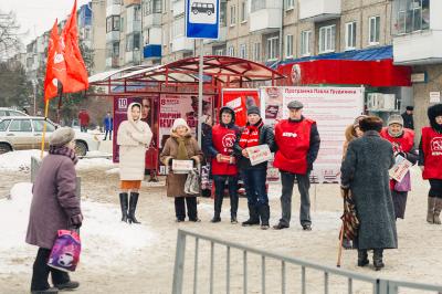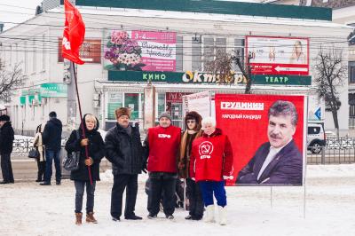 программой П.Н. Грудинина. В ярких накидках КПРФ участники пикета