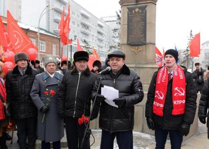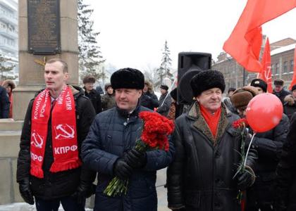 Новосибирский областной комитет КПРФ в честь 100-летия Красной армии организовал торжественное шествие и митинг возле бюста маршала Покрышкина.