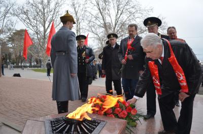 Митинг начался с возложения цветов к Вечному Огню у Мемориала защитникам Севастополя 1941-1942 гг. В возложении цветов приняли участие городской комитет КПРФ, Союз Советских Офицеров и севастопольский комсомол, а так же активисты Союзного движения «17 марта — за возрождение СССР».