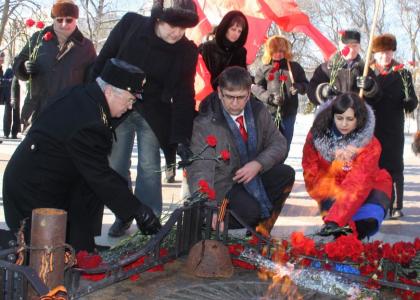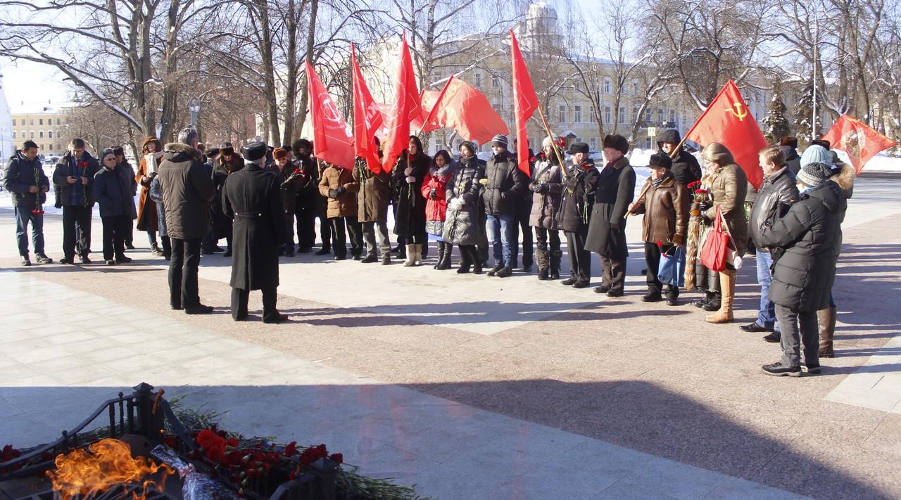 В день столетия Красной Армии ярославцы собрались у Вечного огня. Там состоялся праздничный митинг, посвящённый памяти героических советских воинов, в разные годы сражавшихся с врагами под красным знаменем.