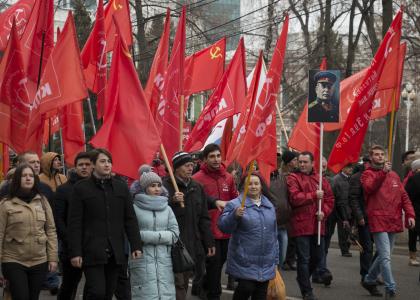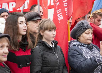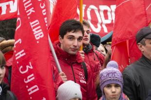 Баннер «Возродим Армию и Флот» в голове колонны несли члены ЦК партии Н.И. Осадчий и П.В. Соколенко, другие коммунисты-депутаты, представители руководства крайкома КПРФ и Союза офицеров, молодые активисты.