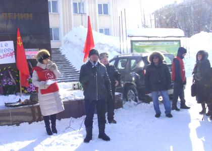 3 марта на площади Ленина города Алдана прошёл митинг в защиту нашего кандидата Грудинина Павла Николаевича. Были изготовлены лозунги, подборки для распространения среди участников газет и листовок о деятельности и программе «20 шагов Павла Грудинина», также были розданы листовки «Голос «ПРАВДЫ – народу!» с авторской статьёй главного редактора Морозовой Зинаиды Григорьевны «Сталин не ушёл в прошлое, он растворился в будущем».