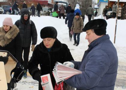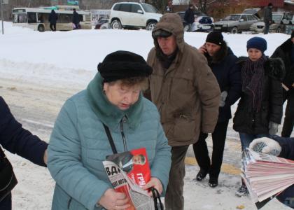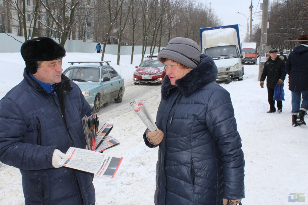 Никакая погода не помеха - и в метель и в мороз выходят коммунисты на улицы города, чтобы не осталось в обществе равнодушных людей. Жители города газеты берут охотно. Конечно, есть отдельные элементы, агрессивно настроенные по отношению к нашему кандидату. Что ж, здесь налицо влияние продажных правительственных СМИ.