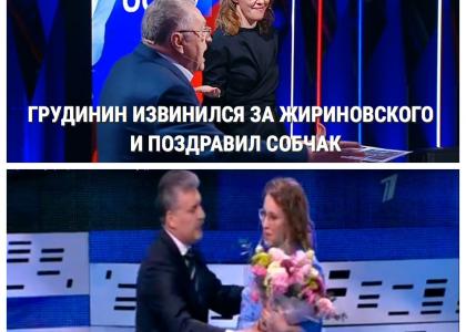 Напомним, во время проходивших 28 февраля теледебатов на канале «Россия 1» лидер ЛДПР Владимир Жириновский в грубой форме обругал Ксению Собчак. Она, в свою очередь, вылила на него стакан воды.