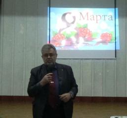 С поздравительной речью выступил председатель Приморского регионального отделения «Союза Советских офицеров» Владимир Витальевич Гришуков, поздравивший от имени мужского населения всех представительниц прекрасного пола, пожелал им весенних улыбок, крепкого здоровья и большого счастья. В качестве подарка девочкам, девушкам, мамам, бабушкам прозвучали песни в исполнении Владимира Витальевича.