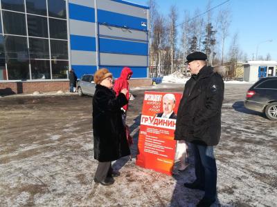 Продолжается агитация в Бокситогорском районе, где проводятся одиночные пикеты в городах Бокситогорск, Пикалево, деревнях и поселках района. 8 марта, коммунисты распространили среди жительниц Бокситогорска поздравительные открытки от Павла Грудинина.