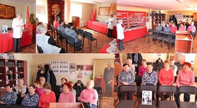 Заместитель руководителя отделения Людмила Кузнецова рассказала собравшимся о жизненном пути и творчестве пролетарского писателя Горького. О его отношении к ленинской партии, революции, взаимоотношениях с Лениным, Сталиным, Чеховым, Толстым, Шаляпиным.