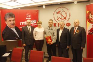 По окончании доклада, первый секретарь Ярославского ОК КПРФ вручил наградной вымпел первому секретарю Любимского районного комитета КПРФ А.Грибко, как руководителю отделения, показавшего наилучшие результаты, ведь именно в Любимском районе за П.Н.Грудинина проголосовало наибольшее число избирателей.
