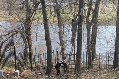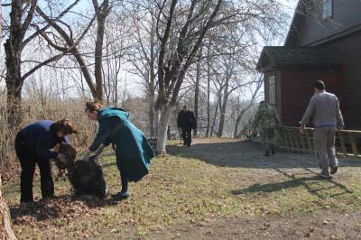 опавшую листву, взрыхлили цветочные клумбы, спилили сухие ветки с деревьев.