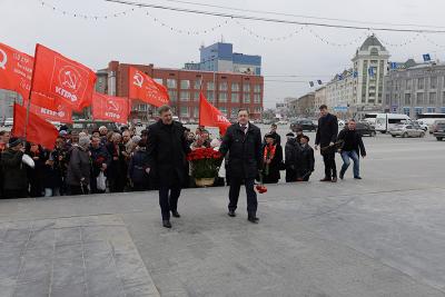 22 апреля в Новосибирске Новосибирский Обком КПРФ провел торжественное возложение цветов к памятнику Ленина в связи с годовщиной со дня рождения Владимира Ильича.