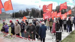 Перед началом торжественного возложения цветов к памятнику В.И. Ленину саратовские коммунисты провели митинг под лозунгом «За социальную справедливость!».