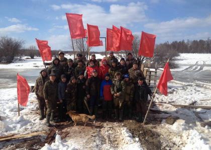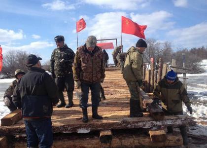 семи километрах от районного центра, 10 коммунистов и 14 местных жителей построили мост через речку