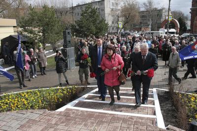 Участники митинга почтили память погибших вследствие аварии на Чернобыльской АЭС минутой молчания. Затем к подножию памятника и стелы с именами погибших ликвидаторов легли живые цветы.