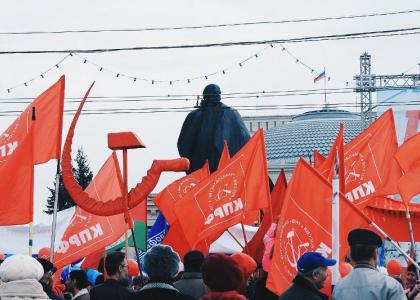 проспекту, многотысячная колонна КПРФ заняла центр площади Ленина, где должен