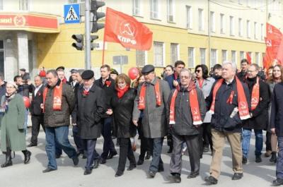 проспекту, многотысячная колонна КПРФ заняла центр площади Ленина, где должен