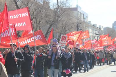 районного отделения КПРФ. Вместе с КПРФ в колонне прошли активисты общественных