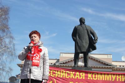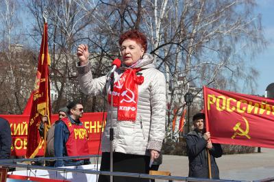 главе колонны шла лидер коммунистов Тюменской области Тамара Казанцева. Демонстранты