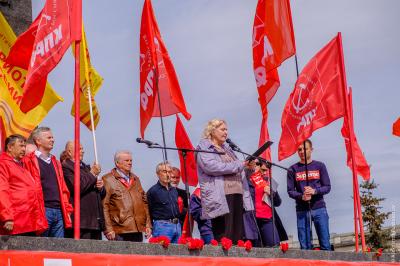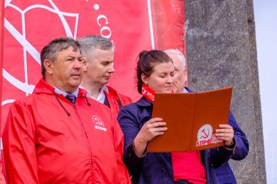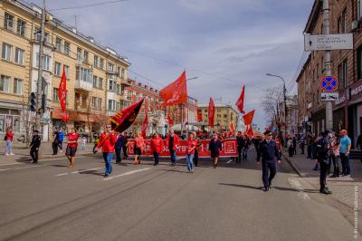 Под знамёнами КПРФ в первомайской колонне были комсомольцы,