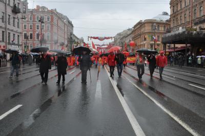 ледяной дождь, вместе с КПРФ и Ленинским комсомолом РФ в колонне коммунистов по