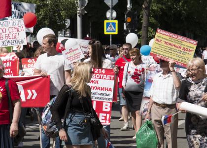 ряды демонстрантов встали и инициативные группы обманутых дольщиков и