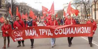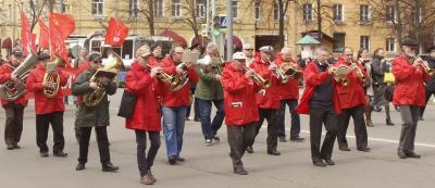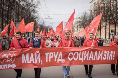 демонстрантов были знакомые первомайские лозунги: «Май, труд, социализм!»,