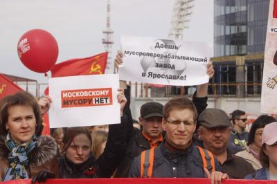 самая многочисленная колонна горожан, идущая под транспарантом «Нет мусору из