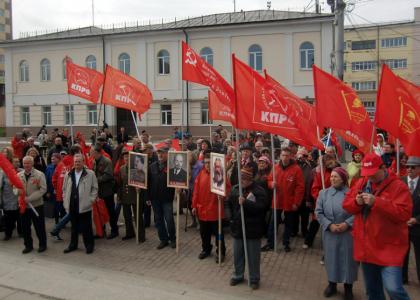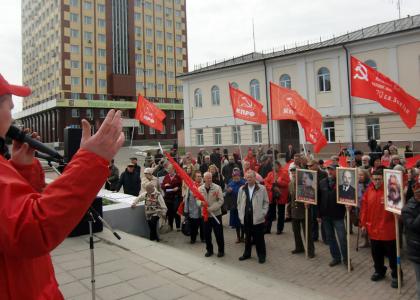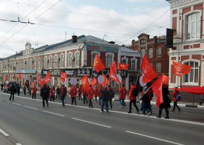 сторонников КПРФ двинулась по проспекту Ленина к площади Революции. Впереди шла
