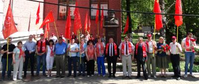 а также местные коммунисты принесли цветы к памятнику тому, кто указывал им по-