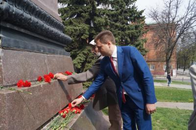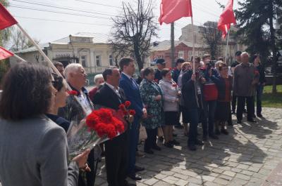 В завершение мероприятия собравшиеся возложили алые гвоздики к памятнику Карлу Марксу.