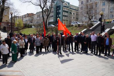 Торжественная акция прошла в сквере в одном из главных мест города Владивостока – возле памятника В.И. Ленину, установленного в 1930 году. В мероприятии приняли участие не только нынешние комсомольцы, но и заслуженные ветераны ВЛКСМ и КПСС, члены общественной организации «Дети Войны» и ВЖС «Надежда России».