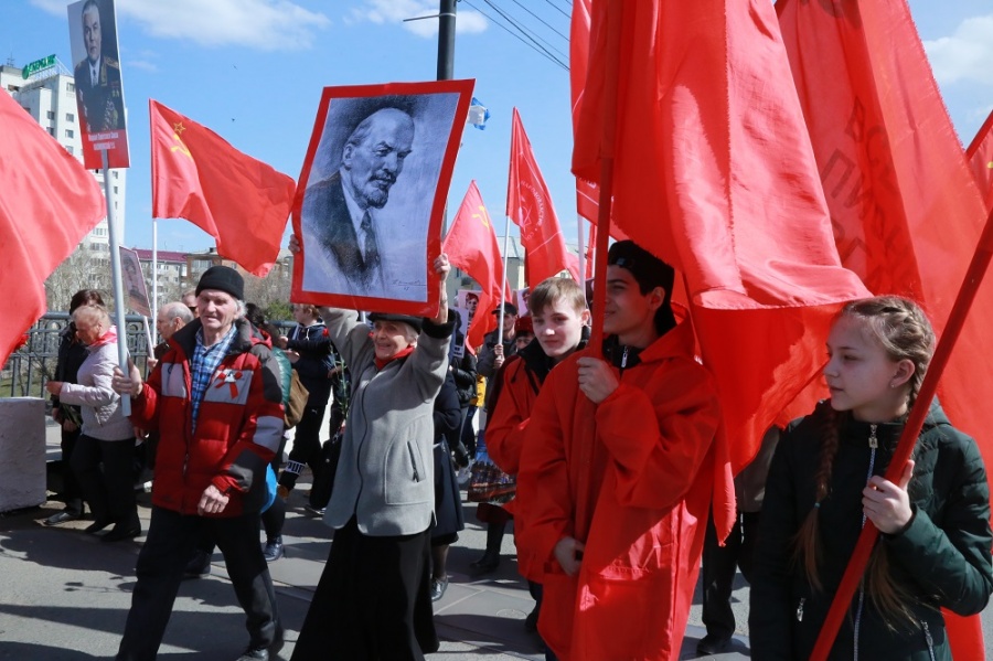 Колонна омских коммунистов собиралась на Ленинградской площади. Многие подходили к расположенному неподалеку памятнику детям Ленинграда, эвакуированным в Омск в годы войны, и клали цветы у ног скульптурной композиции. Среди тех, кто задержался у памятника, были и постоянные участники мероприятий КПРФ – пионеры из отряда Олега Кошевого, действующего при Кировском МО.