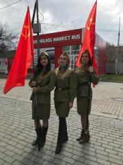 Великой Победы – красными флагами, и с участниками праздничного десанта.