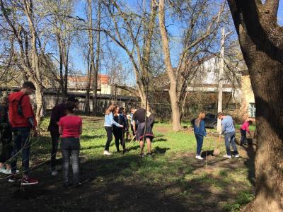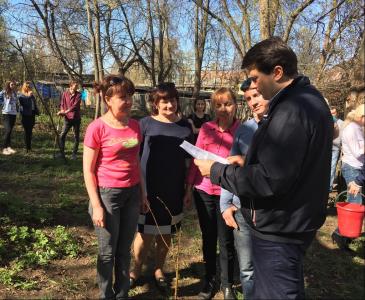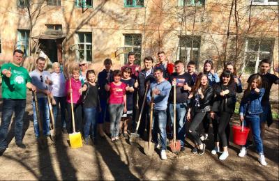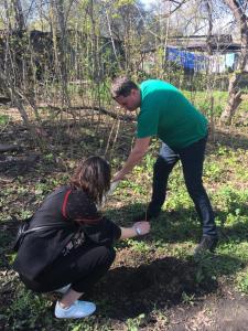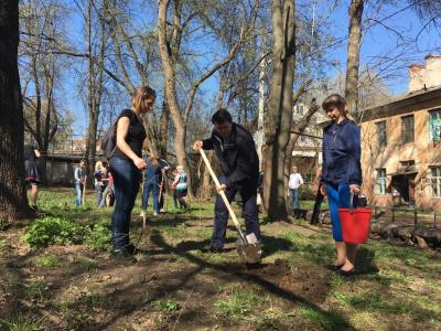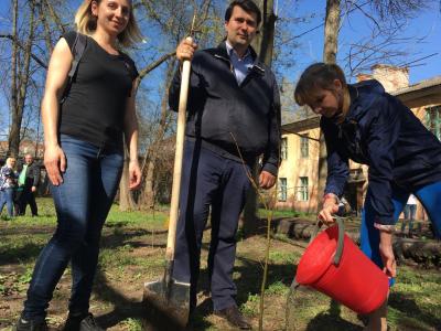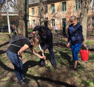 жителями высадили саженцы клена и убрали придворовую территорию.