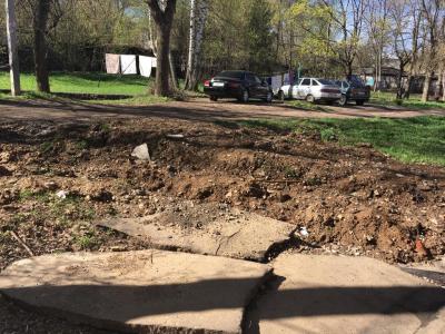 устранили, землю не разровняли и не уложили асфальт, а также оставили дыру на