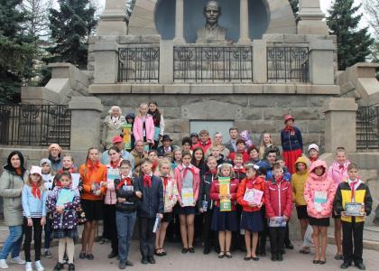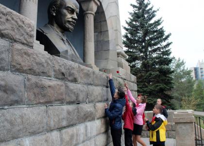 Здесь же, на Алом поле, у памятника В.И. Ленину, кандидат педагогических наук Лидия Мельникова, провела ленинский урок – рассказала об истории создания этого памятника. Возложив цветы к его подножию, участники праздника сфотографировались на память.