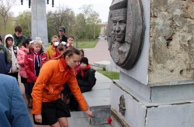 Здесь же, на Алом поле, у памятника В.И. Ленину, кандидат педагогических наук Лидия Мельникова, провела ленинский урок – рассказала об истории создания этого памятника. Возложив цветы к его подножию, участники праздника сфотографировались на память.