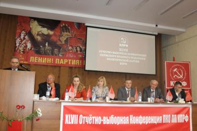 26 мая состоялась XLVII отчётно-выборная Конференция Пермского краевого отделения КПРФ. В работе Конференции приняли участие почётные гости: секретарь ЦК КПРФ М.В.Дробот, член ЦК КПРФ, Второй секретарь ЦК ЛКСМ РФ, куратор Н.Ю.Дорохова, заместитель заведующего организационно-партийным отделом ЦК КПРФ Б.С.Павленко, делегаты, приглашённые, а также наблюдатели за легитимностью Конференции - представители администрации города Перми.