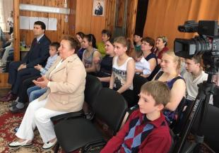 В честь праздника ребята организовали небольшой концерт и получили от Олега Лебедева памятные подарки и сладости.