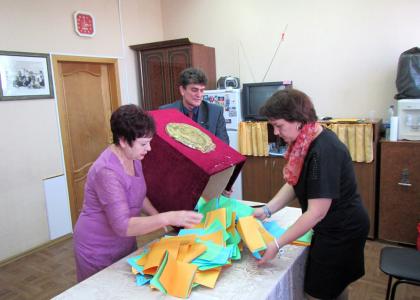 Затем слово взял председатель счётной комиссии конференции В.В. Кирьяков, который представил делегатам для утверждения образцы бюллетеней и объяснил процедуру и порядок проведения тайного голосования.