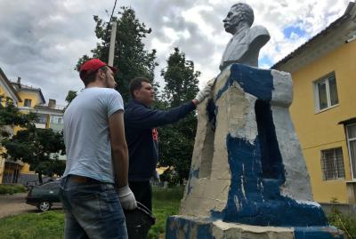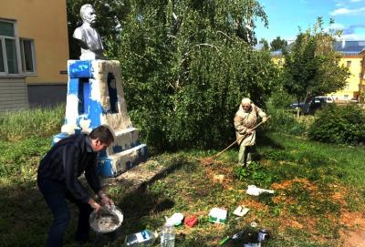 По инициативе первого секретаря Ефремовского ГК КПРФ Любови Стабровой памятник Горькому решили отреставрировать. Члены бюро обкома КПРФ Алексей Лебедев, Михаил Федоров и Михаил Батяйкин покрасили бюст писателя и отремонтировали постамент.