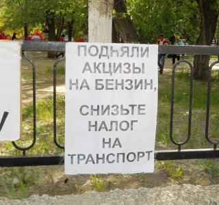 Вдоль дороги стояли коммунисты с плакатами против роста стоимости цены на топливо. Особенностью этих плакатов было обращение к водителям, если они тоже против роста цен на топливо, то они должны посигналить. Поэтому абсолютное большинство водителей поддержало акцию протеста коммунистов, и в воздухе звучал постоянный гул клаксонов, проезжающих машин. Думается, что на следующей акции протеста будет вывешено приглашение работающих граждан и водителей на митинг или другую протестную акцию, если правительство не понизит цены.