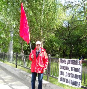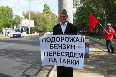 На одном из плакатов было написано «Сегодня подорожал бензин, завтра подорожают продукты питания». Проходящие граждане говорили, что уже они подорожали и особенно подорожали лекарства.Сегодня покупая батоны, я спросил у продавца, «Почему столовый батон стал такой маленький?». Мне ответили, « Егомасса уменьшилась на 25 г., да и с другими изделиями из муки произошло снижение их массы, но цена осталась прежней». Вот так «дурят» нас производители продуктов питания. Параллельно активисты ОО Дети войны раздали около 1000 газет «Коммунист». Спасибо Вам наши дорогие ветераны!
