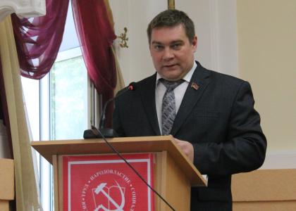 С докладом о работе Псковского городского отделения КПРФ выступил первый секретарь горкома Д.Ю.Михайлов.